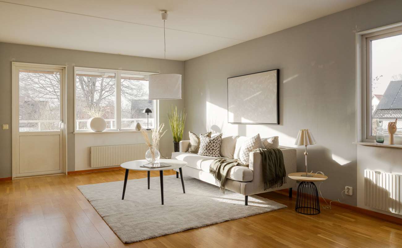Bakom ratten i en fullastad minibuss sitter inredningsstylisterna Linnéa Ekberg och Inger Åkesson på väg ut mot dagens uppdrag. Deras arbetsdag på Åkesson Mäklarbyrå innebär många besök för homestyling i olika bostäder som förbereds inför försäljning.